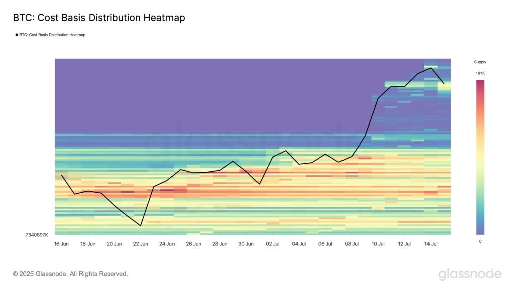 The Bitcoin cost basis heatmap shows that investors aggressively accumulated approximately 196,600 BTC between $116,000 and $118,000 following the top asset’s recent price correction.