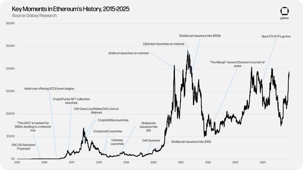 Key Moments in Ethereum 10 Years History (Source: Galaxy Digital)